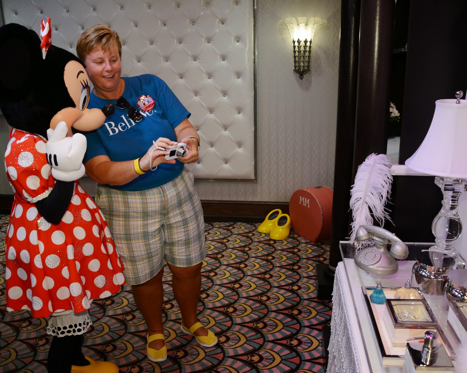 Right away I saw the little suitcase with the initials MM and the yellow shoes. I couldn't resist a photo of the just the bag and shoes and then realized that I, too, was wearing yellow shoes--just like Minnie. So, we posed together with our yellow shoes.